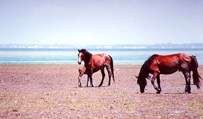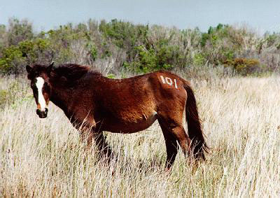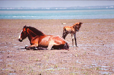 she was 8 hours old, she swam behind her dam back to Shackleford.