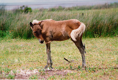 Two fillies. An east-end filly named "Shag" born Spring 1997 (top) and a west-end filly named "Bo" born Spring 1996. Before we learned Bo's real name, we had nicknamed her "Comma".